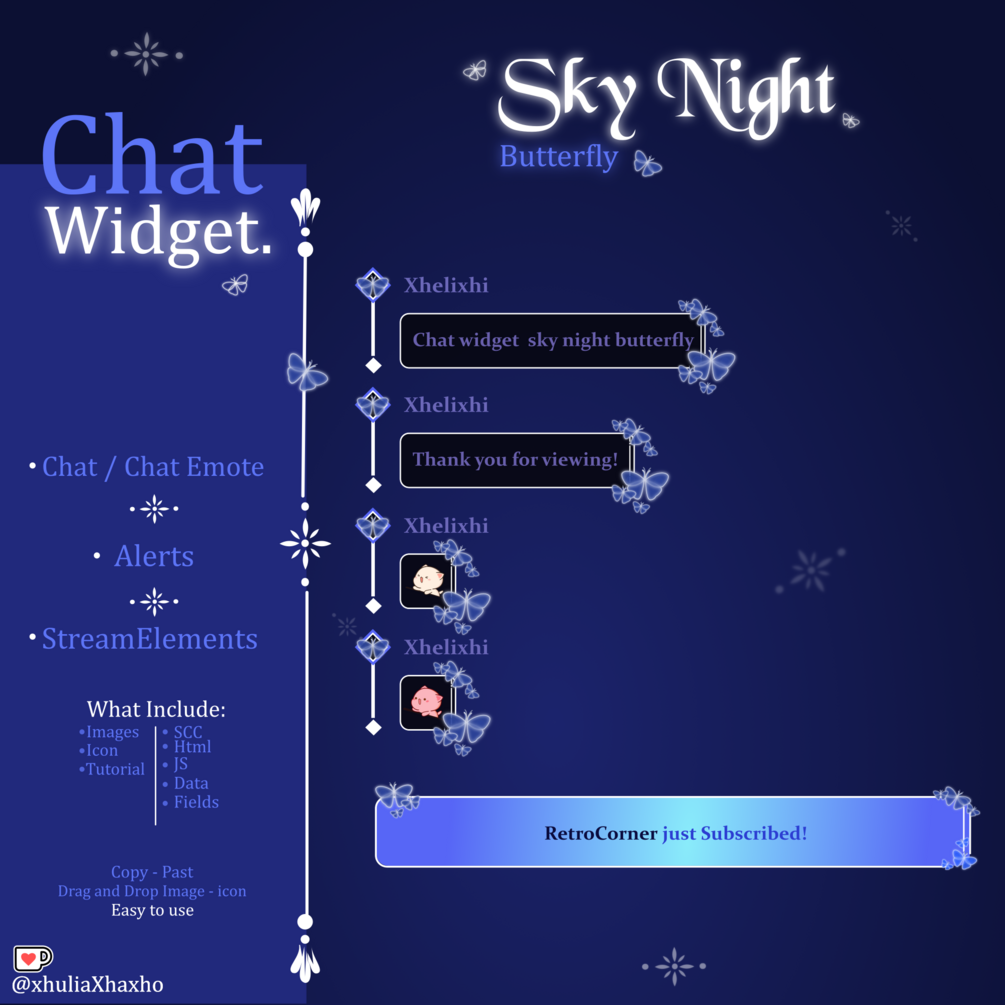 Watch video here: https://www.etsy.com/listing/1685897559/sky-night-butterfly-chat-widget?click_key=013a46684c549be9d293b944ddba5260d39a1b59%3A1685897559&click_sum=9c8074ec&ref=shop_home_active_1&pro=1