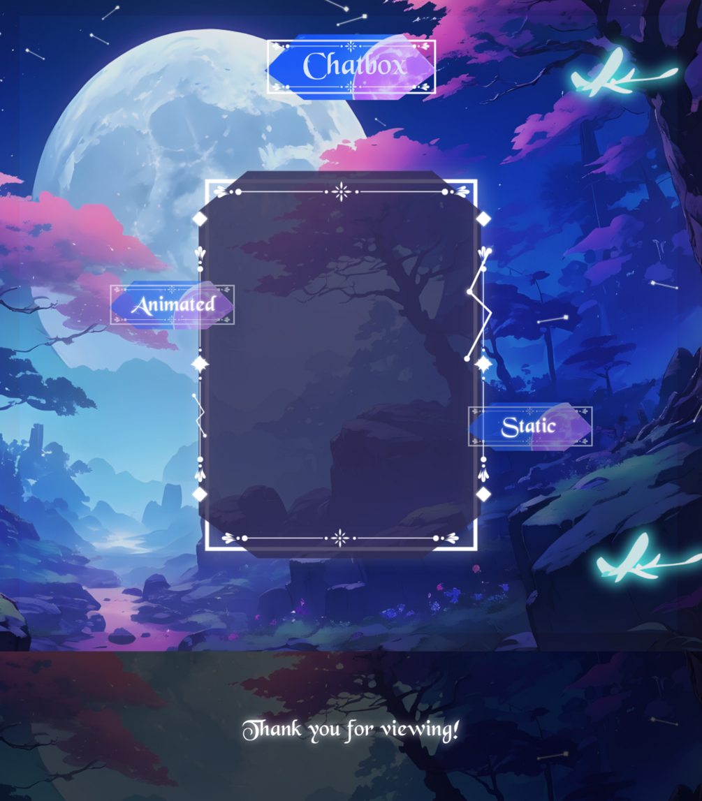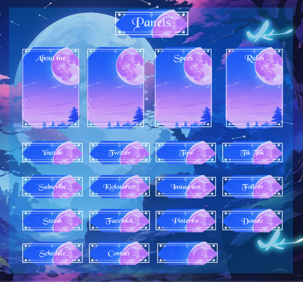 Sky Night Stream Overlay, Light & Dark Twitch Overlay, Blue Pink Glowing Forest Aesthetic, Animated Scenes, Vtuber, Just Chatting Overlay