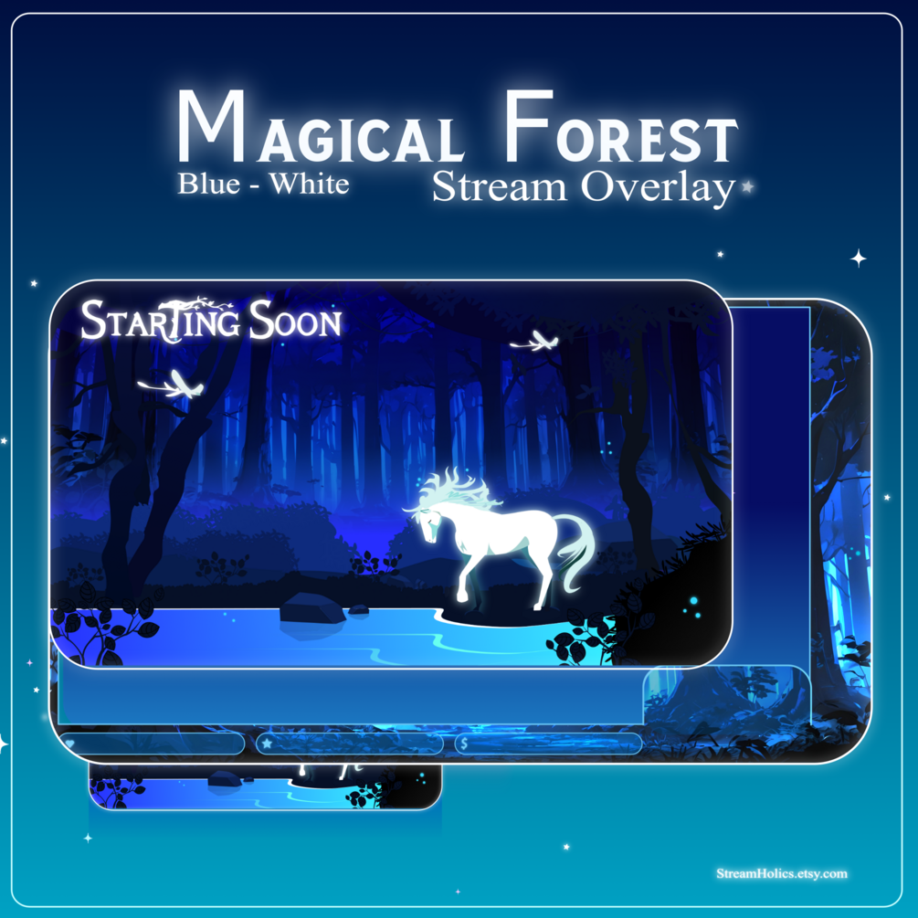 MAGICAL FOREST Stream Overlay Animated Pack, Magical Overlay Animated, Forest Stream Overlay, Horse Stream Overlay Animated, Blue Overlay